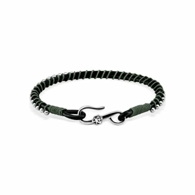 Bracelet Zeades Galhauban en acier, cuir noir et textile vert
