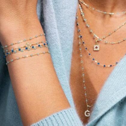 Classique Collier Gigi Clozeau Classique en or blanc et résine bleu saphir, 42cm